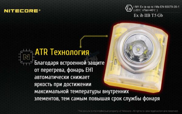 - Технология ATR (Advanced Temperature Regulation) обеспечивает автоматическое изменение яркости в зависимости от температуры фонаря, что предотвращает перегрев.