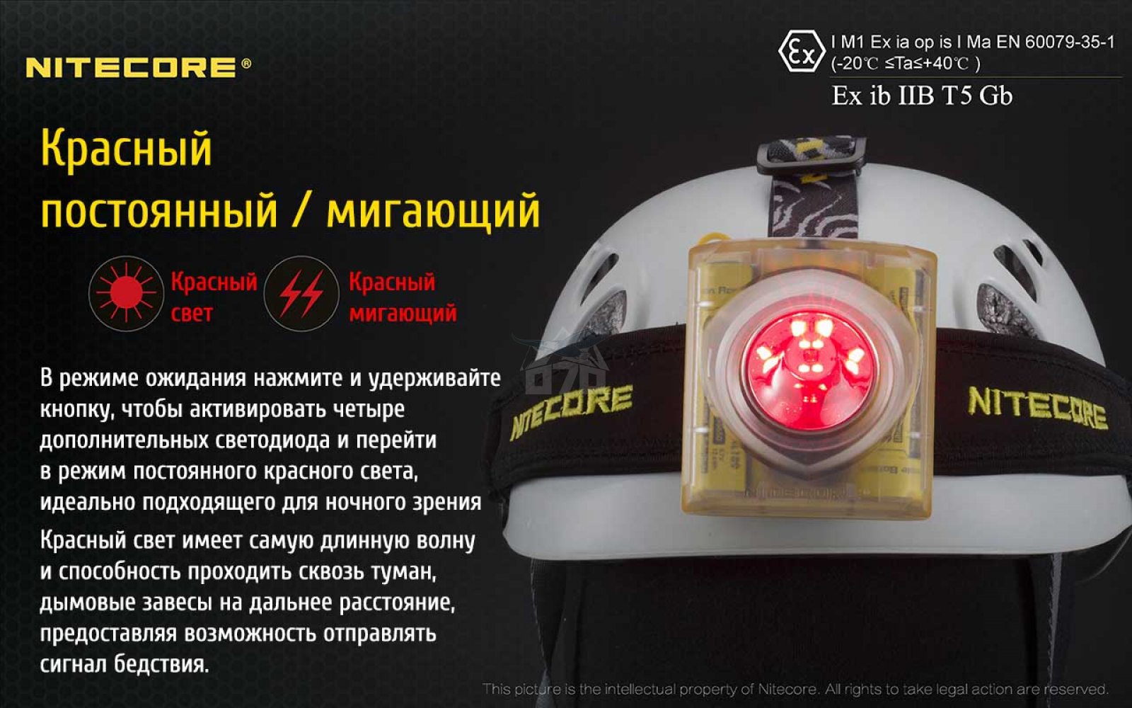 Фонарь налобный, взрывозащищенный Nitecore EH1Explosion-proof flashlight Nitecore EH1, 3500К (Сree XP-G2 S3, 260 Lu