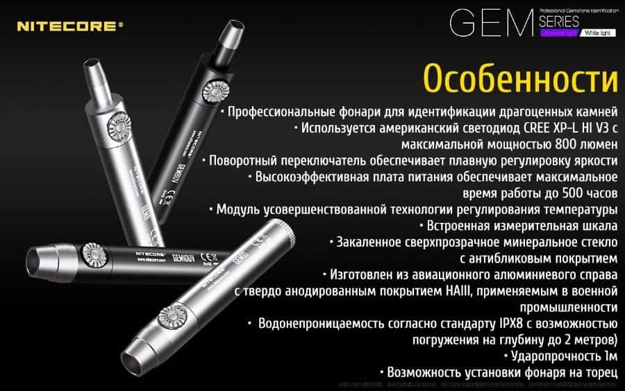 Гарантия: Фонари Nitecore Gem 8 продаются с пятилетней гарантией со стороны производителей.