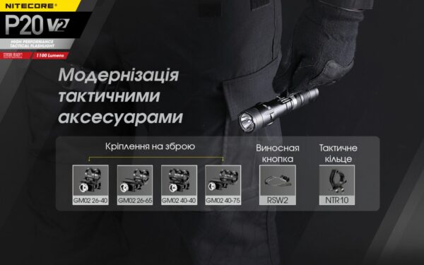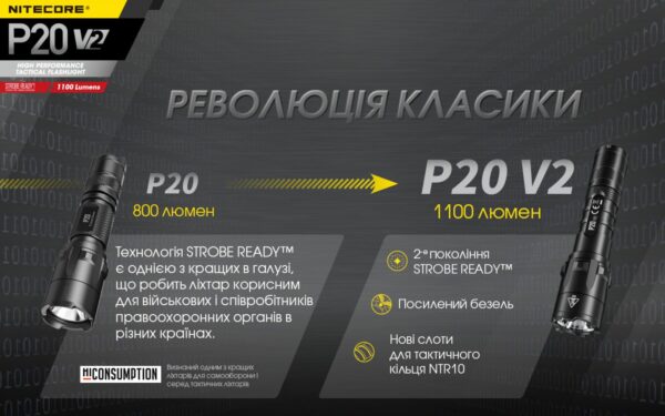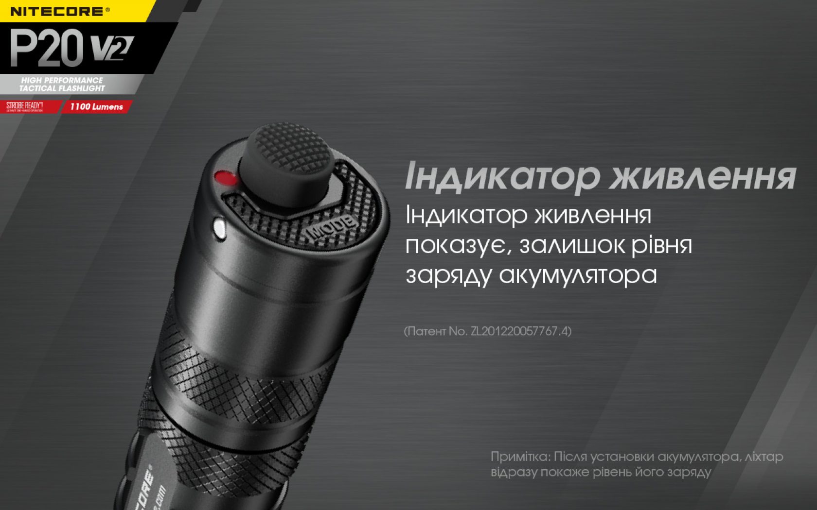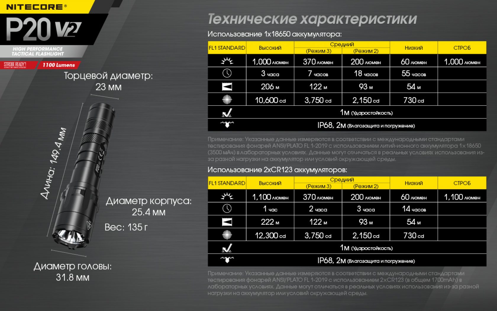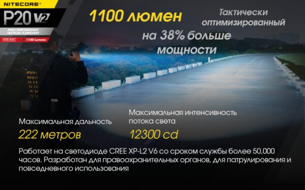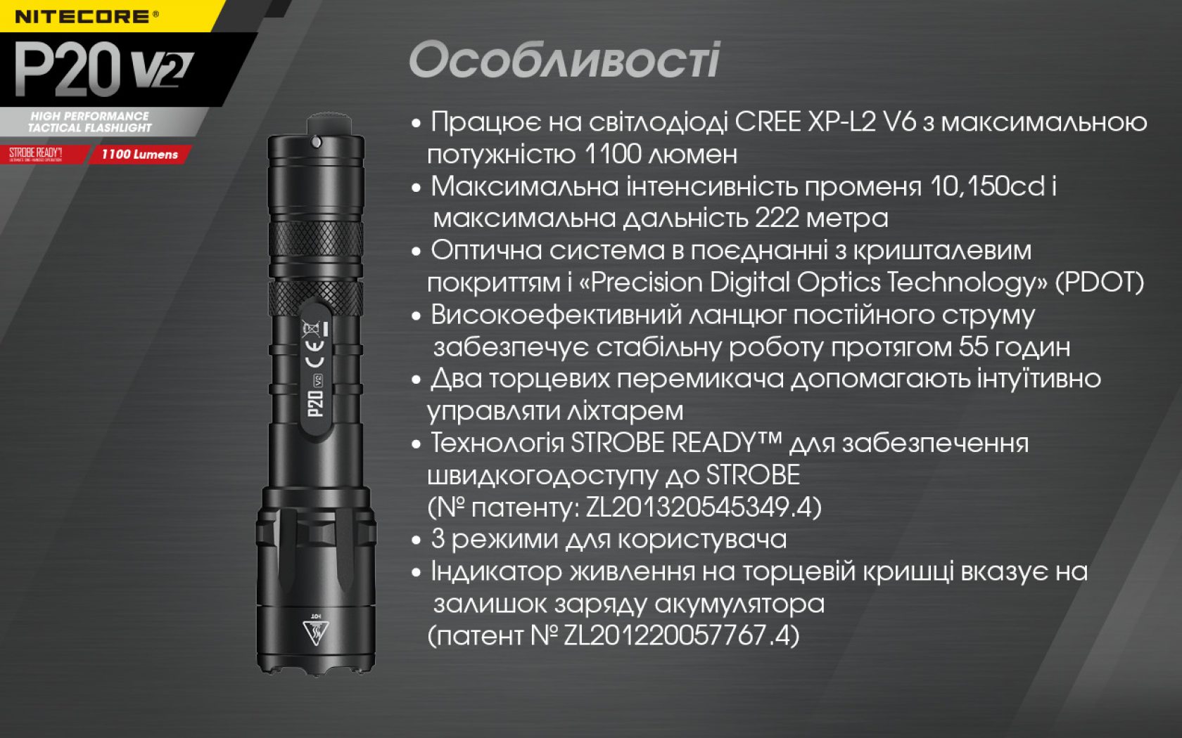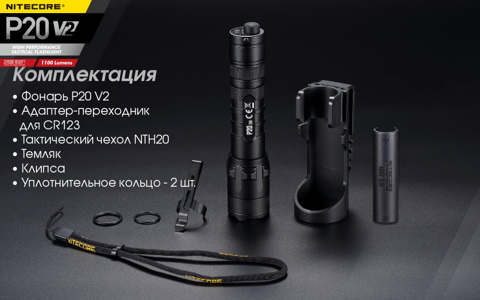 Фонарь Nitecore P20 v2 (Сree XP-L2 V6, 1100 люмен, 5 режимов, 1х18650)
