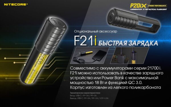- Литий-ионный аккумулятор NITECORE 21700 в комплекте (NL2150HPi 5,000mAh)