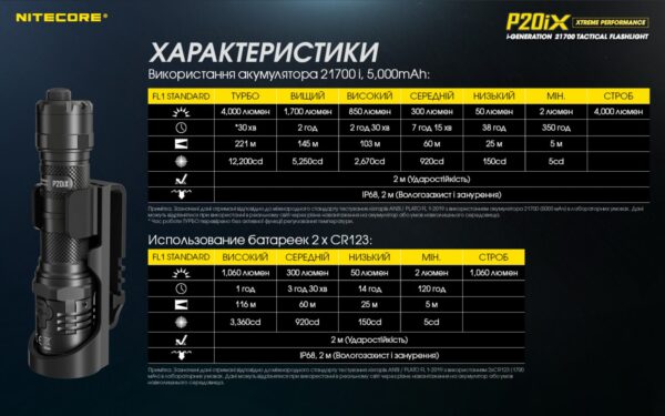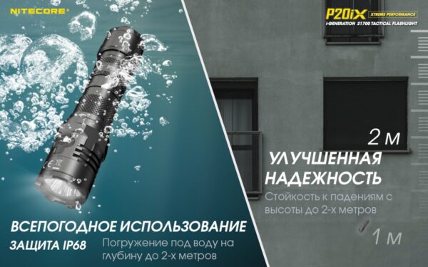 Фонарь Nitecore P20iX (Cree XP-L2 V6, 4000 люмен, 7 режимов, 1х21700, USB Type-C)