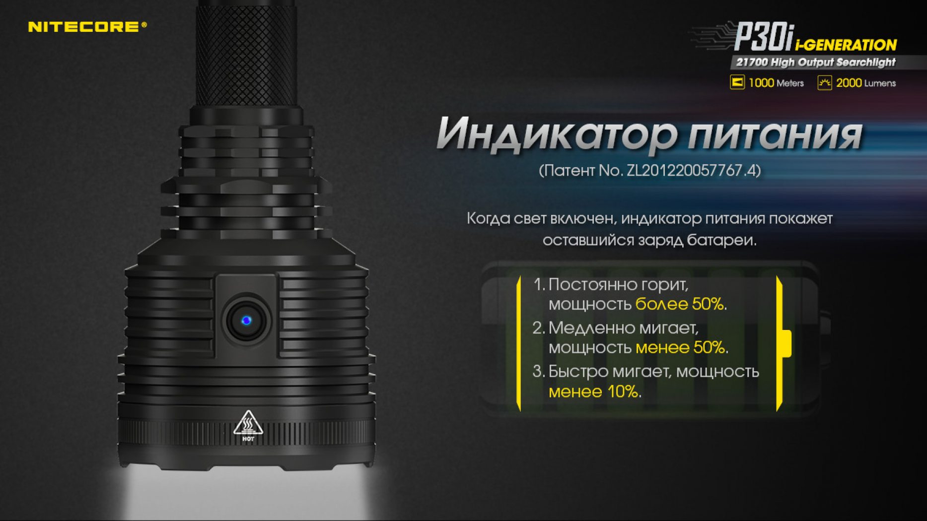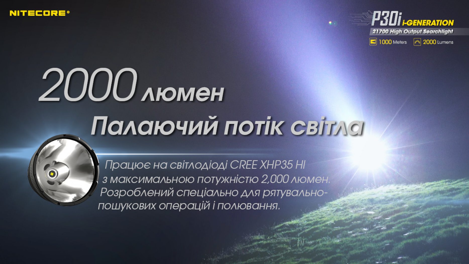 Фонарь Nitecore P30i (Cree XHP35 HI, 2000 люмен, 7 режимов, 1×21700, USB Type-C), комплект