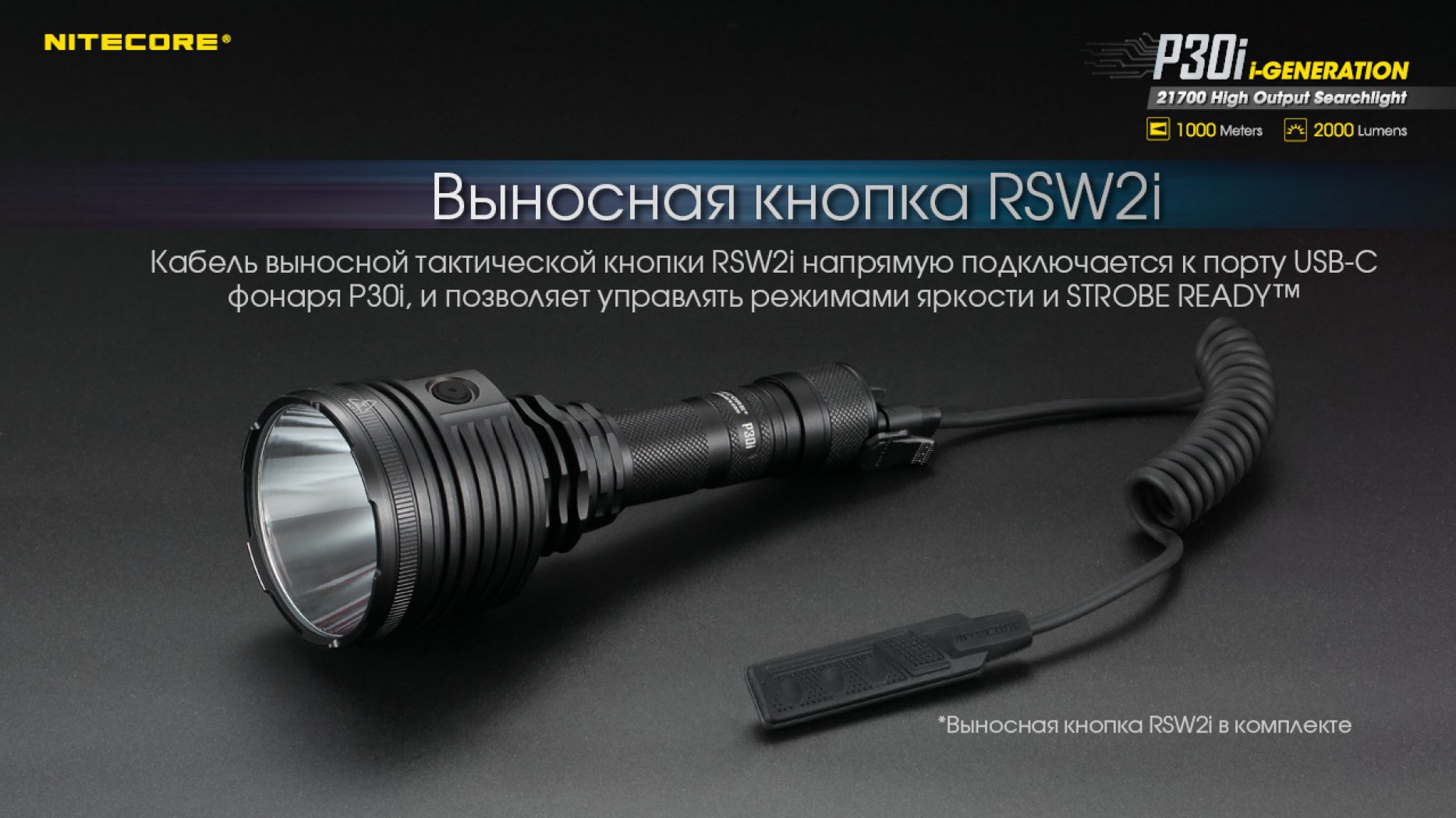 - В комплекте литий-ионный аккумулятор NITECORE 21700 (NL2150HPi 5000 mAh) и выносная кнопка (RSW2i)