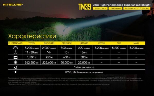 Фонарь Nitecore TM39 (Luminus STB-90 GEN2 LED, 5200 люмен, 7 режимов, 1xNBP68HD)