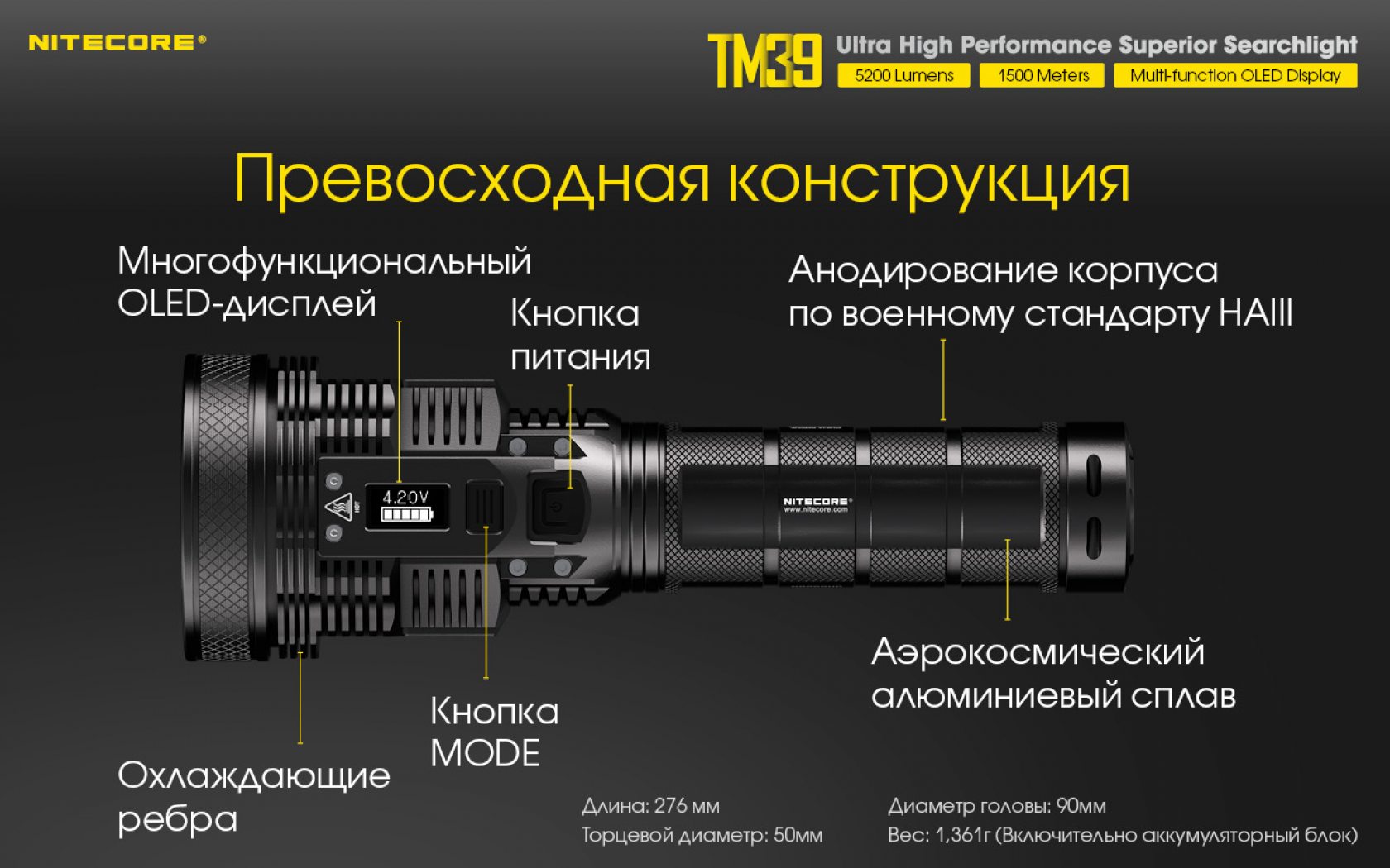 Фонарь Nitecore TM39 (Luminus STB-90 GEN2 LED, 5200 люмен, 7 режимов, 1xNBP68HD)