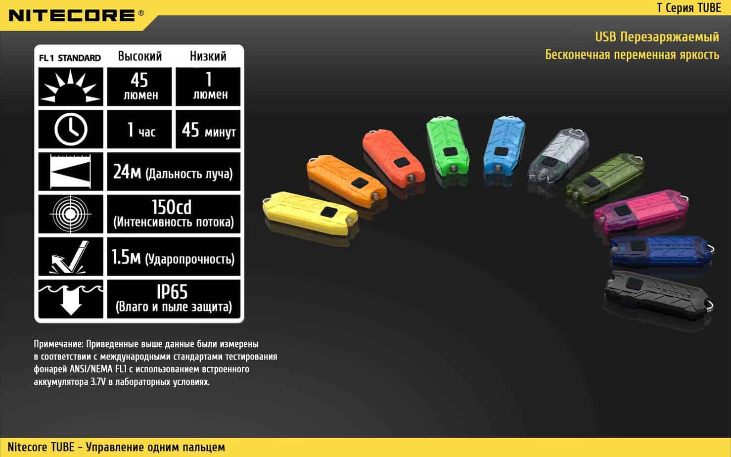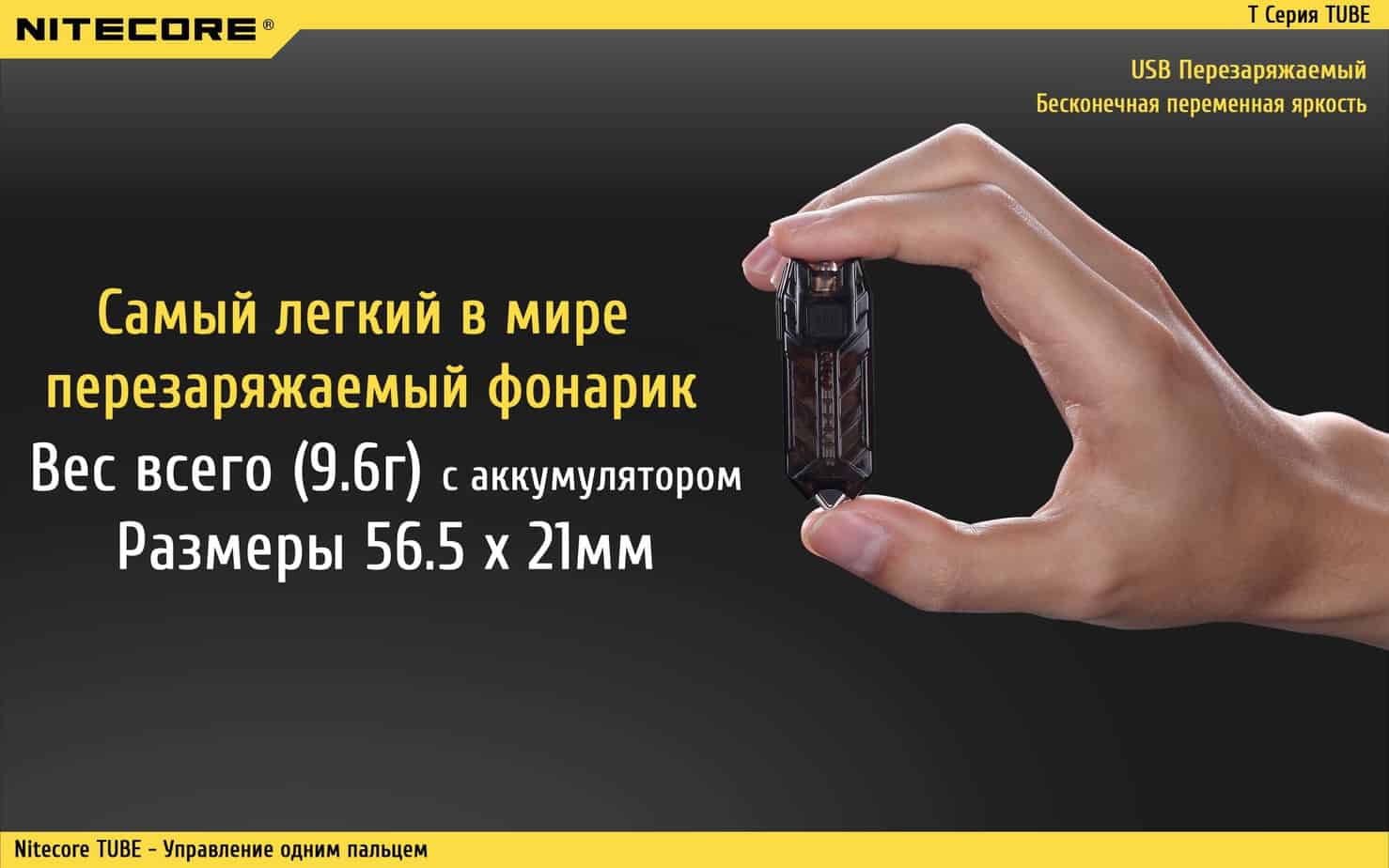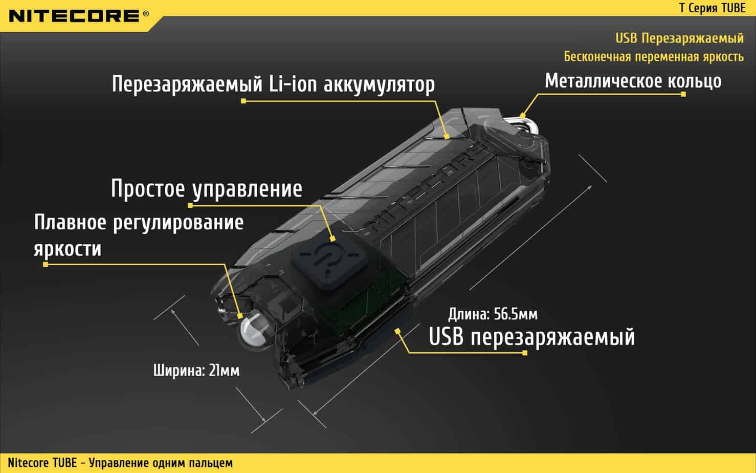 Самый небольшой и в то же время имеющий превосходную производительность наключный фонарик от известного производителя компании Nitecore — это Nitecore TUBE. Представленный фонарь обладает абсолютно небольшими габаритными размерами с отличными для своего класса показателями производительности, которая получается в результате совместной работы элемента питания и светодиода. Преимуществами фонаря Nitecore TUBE является интегрированный литиево-ионный элемент питания, который даст возможность работать в беспрерывном режиме в течении 48 часов, еще одним преимуществом является наличие продуктивного светодиода мощность которого составляет целых 45 люмен.