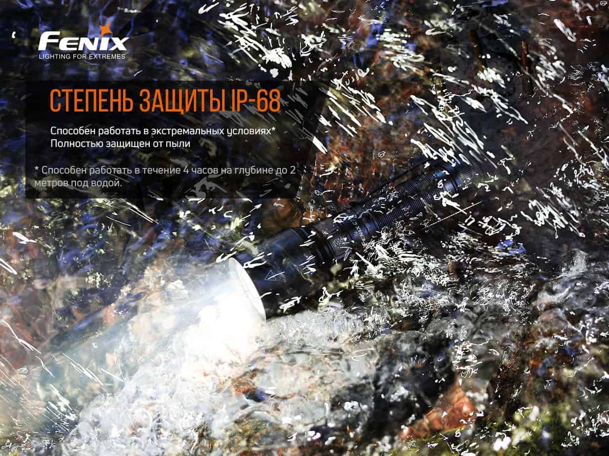 * Приведенные показатели работы фонаря были получены в ходе осуществления лабораторных опытов. Применялся один литий-ионный аккумулятор Fenix ARB-L21-5000, температура воздуха составляла около 21+-3 градуса Цельсия, а влажность была примерно 50%-80%. Параметры работы модели могут отличаться в зависимости от используемой батарейки, а также от условий внешней среды.