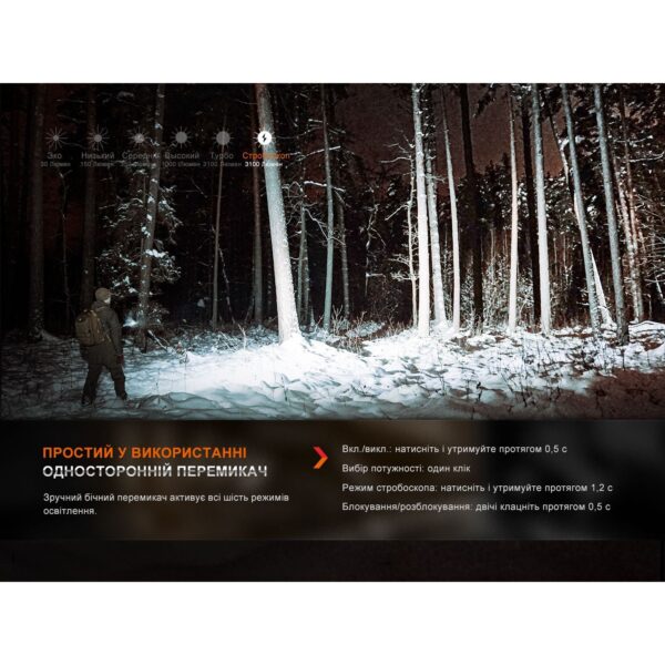 Fenix E35R может непрерывно светить почти трое суток, поскольку фонарь питается от высокопроизводительного батареи — Li-ion аккумулятора 21700. Лучшим вариантом для данной модели является фирменный аккумулятор ARB-L21 соответствующего формфактора, поскольку он гарантированно имеет высокое качество.