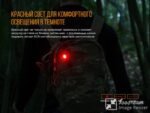 Модель Fenix LD15R оснащена современным светодиодом Cree XP-G3, который способен работать с яркостью до 500 люмен, обеспечивая при этом освещение территории радиусом до 85 метров. Также присутствует дополнительный светодиод красного цвета – Everlight red LED, работающий с яркостью до 4 люмен.