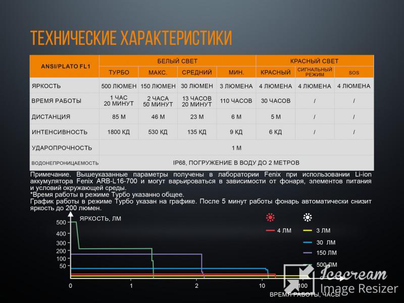 | Комплектация | Фонарь, аккумулятор Fenix ARB-L16-700, кабель USB для зарядки, запасная резиновая накладка, запасное кольцо, чехол, инструкция, гарантия. | ||||||