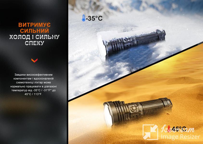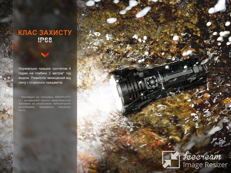 Фонарь защищен от влаги и засорений в соответствии с высоким классом IP68, поэтому может работать даже на глубине 2 метра в течение 4-х часов. Конструкция также не восприимчива к температурным перепадам от -35°C до 45°C.