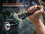 Fenix TK22R почти полностью выполнен из алюминия A6061-T6. Исключение – стальной безель с дополнением в виде трех наконечников из вольфрамовой стали, которые не боятся ударных нагрузок и могут заменить стеклобой. Алюминий обработан методом твердого анодирования НА III, поэтому металл не восприимчив к окислению и другим проявлениям коррозионного процесса.