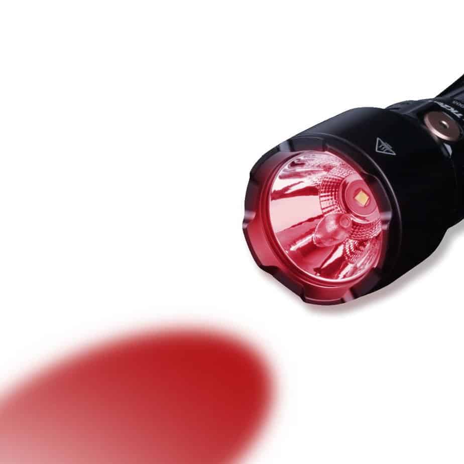 Управляется Fenix TK26R с помощью трех кнопок. Круглая клавиша в хвостовой части нужна для включения либо выключения. Овальная клавиша в хвостовой части нужна для выбора подходящего режима. Боковая кнопка в главной части модели служит для выбора цвета. Чтобы включить фонарь, слегка нажмите на тактическую кнопку без щелчка. Если требуется выключить фонарь, то достаточно отпустить кнопку. Полное нажатие кнопки (до щелчка) приводит к включению фонаря на длительное время. Для выключения необходимо снова нажать на кнопку до щелчка.