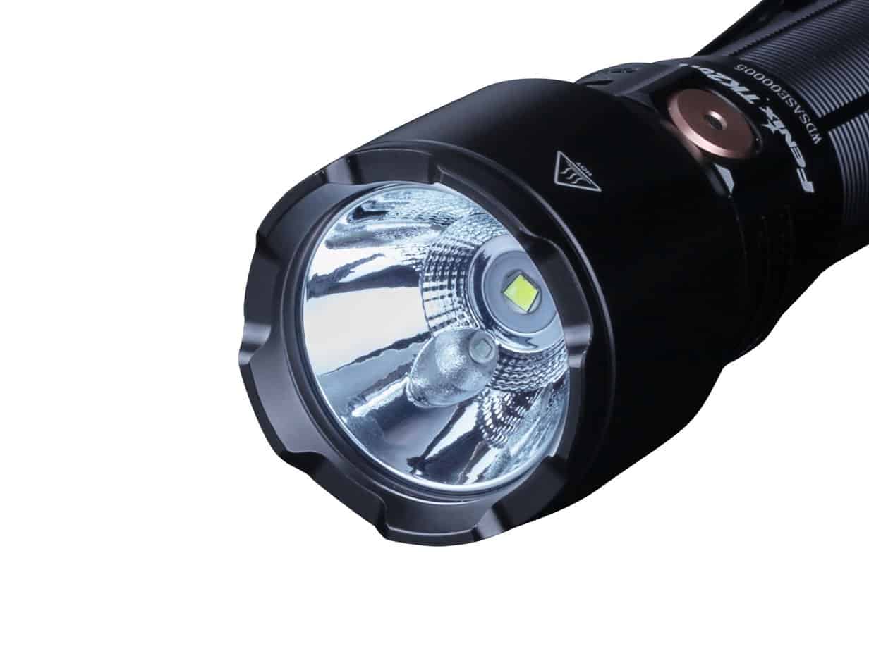 Модель Fenix TK26R позиционируется как тактический фонарь. Пригодится туристам, охотникам, могут применяться для осуществления поисковых работ. Максимальная яркость освещения достигает 1500 люмен, а дистанция освещения – 350 метров. Для питания подходит литий-ионный аккумулятор 18650, также можете применять две литиевые батарейки CR123A. Доступна зарядка с помощью USB Type-C.
