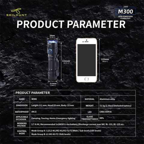 Фонарь ручной Skilhunt M300 HD CW с аккумулятором BL-135 3500mAh