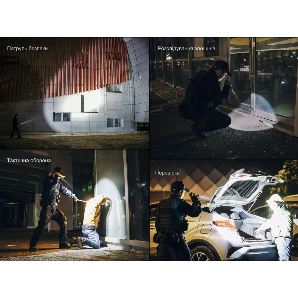 Под линзой из закаленного стекла находится один белый холодный светодиод Luminus SFT70 Gen2 с цветовой температурой ~6500К. Диод генерирует концентрированный луч максимальной яркостью 3200 лм и дальностью до 410 м – впечатляющие показатели, позволяющие детально осветить большое пространство и быстро оценить ситуацию в критический момент.