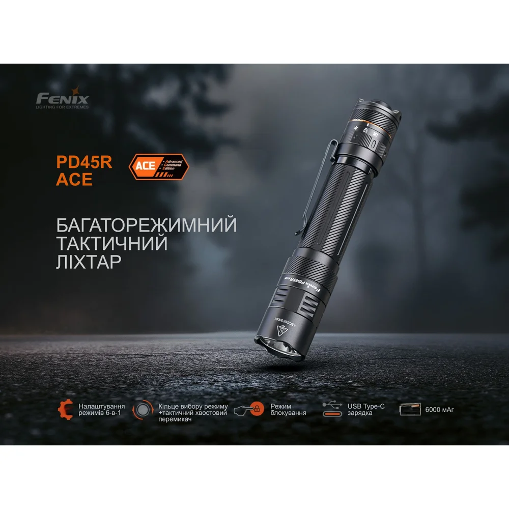 Фонарь Fenix PD45R ACE является частью серии ACE (Advanced Command Edition) – специальной линейки для тактики, служебных целей и повседневного применения.