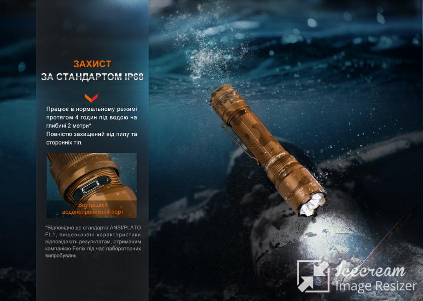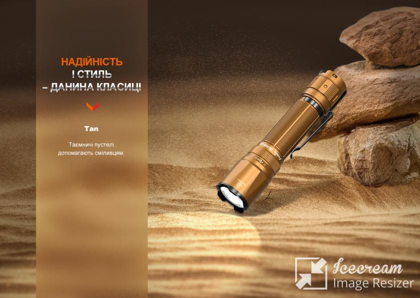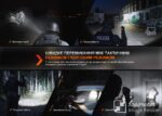 Fenix TK20R имеет несколько полезных опций. Среди них есть защита от перегрева. Он срабатывает каждый раз, когда температура корпуса повышается до 60°C, и мгновенно снижает мощность света, чтобы нагрев не отразился на срок службы электроники отрицательным образом. Также предусмотрено постепенное понижение яркости при падении количества заряда в элементе питания.