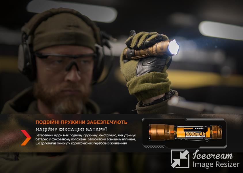 Модель совместима с множеством аксессуаров Fenix, которые повышают ее функциональность: с креплениями ALG-00, ALG-16 M-Lok и ALG-18, тактическим кольцом ALR-01 и выносной кнопкой AER-05. Перечисленные аксессуары приобретаются отдельно.