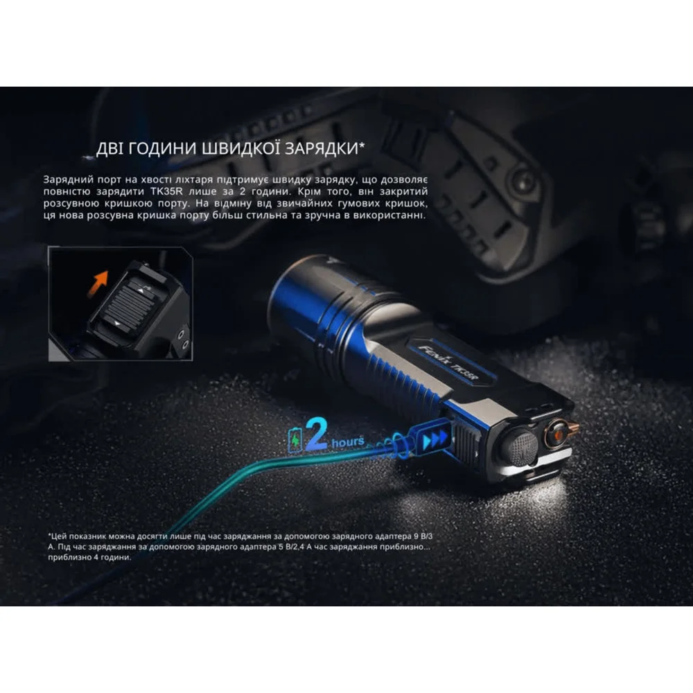 Фонарь Fenix TK35R — тактическая модель для профессионального применения во время патрулирования, поисково-спасательных целей и сложных миссий под открытым небом, когда необходим функциональный, яркий и особенно крепкий источник света.