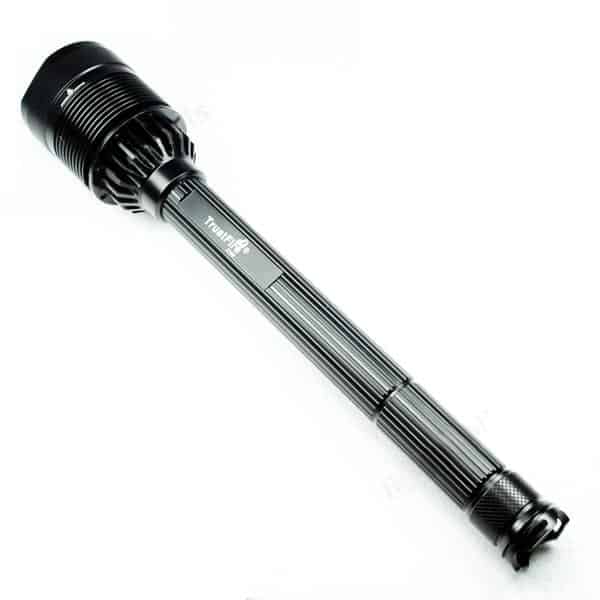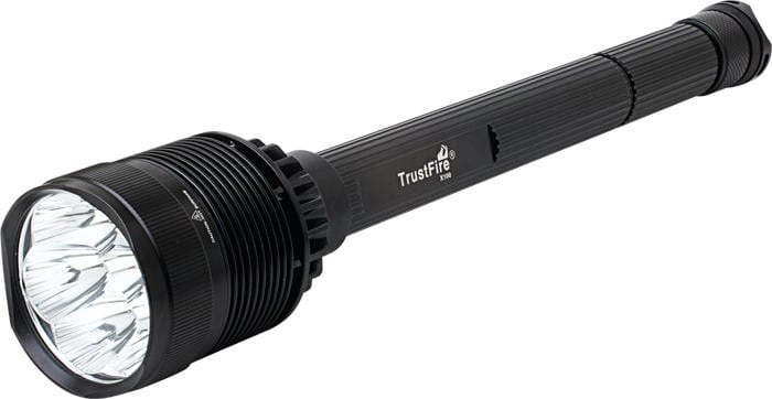 Мощный светодиодный фонарь TrustFire Х100. Фонарь TrustFire Х100 основан на базе семи американских светодиодах Cree XM-L2, благодаря которым максимальная мощность достигает рекордных 8000 люмен . Фонарь имеет гладкий рефлектор и пять режимов работы. В качестве элементов питания фонарь TrustFire Х100 может использовать три или четыре Li-Ion аккумулятора типа 26650. Для использования четырех аккумуляторов 26650 в комплекте с фонарем имеется расширительная туба. Фонарь имеет луч с широкой периферической засветкой.