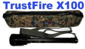 Основные отличия фонаря TrustFire X100 от похожей модели TrustFire TR-J18 — это возможность использовать до 4-х аккумуляторов 26650 (TrustFire TR-J18 до 3-х), а так же немного увеличенная головная часть фонаря TrustFire X100 — 75мм (TrustFire TR-J18 — 62мм). Кроме этого наличие камуфляжной сумки для ношения и хранения X100. Если Вы хотите кого-то удивить мощным и ярким фонарем, то TrustFire X100 это именно то, что нужно. Отлично используется как фонарь для охоты, рыбалки, активного отдыха, туризма или как поисковый фонарь.