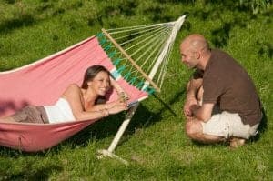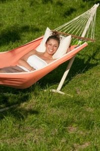 Надежное крепление к стойкам обеспечивается прочными крепкими канатами, которые равномерно распределяются всей ширине сукна. Главным преимуществом данной модели является наличие бамбуковой планки, которая расправляет и удерживает сукно по всей ширине. Прочный бамбук, имеет гладкую поверхность, которая не портится под воздействием атмосферных явлений. К тому же, гамак очень легко крепится в стойкам с помощью специальных петель. И даже, если расстояние между петлями слишком большой, в всегда можете удлинить гамак с помощью специального каната.