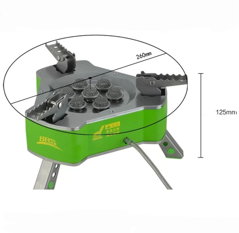 В зависимости от выбранной мощности горелка может генерировать высокое или низкое пламя, причем во втором случае оно трансформируется в инфракрасное излучение, которое способствует равномерному нагреванию посуды и препятствует пригоранию продуктов питания. BRS-71 работает на разном топливе: пропане, бутане, сжиженном газе. Расход топлива составляет около 756 г/ч. Газовый баллон подсоединяется к шлангу с резьбовым соединением, которое закрывается с помощью заглушки. Благодаря этому мелкая пыль не забивается в резьбу во время транспортировки, предотвращая риск случайного возгорания при последующем подключении картриджа. Длина шланга составляет 650 миллиметров.