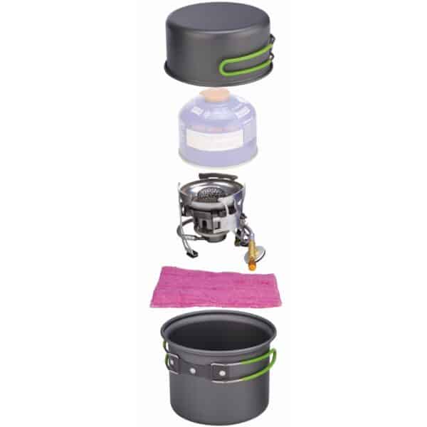 Эти практические котелки и горелка в комплекте облегчат процесс приготовления пищи в полевых условиях. Отличная вещь для туристов, любителей активного отдыха среди дикой природы. В наборе предусмотрена мягкая салфетка.