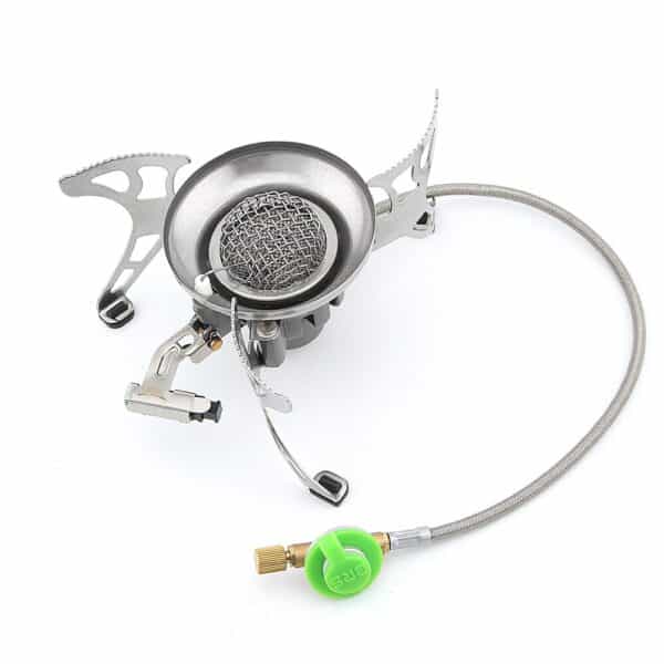 Мощность горелки — 1400 ватт. Потребление топлива — 106 грамм в час. Один литр воды закипает за 5 минут 50 секунд. Вес горелки — 310 грамм. Закрытое горение улучшает тепловую эффективность на 35 процентов. Дизайн внутренней сетки для камеры сгорания способствует превращению пламени с целью равномерности нагрева. Конструкция верхних пазов горелки усиливает трение, улучшая сопротивление скольжению. Конструкция нескользящей подставки адаптирована для различных ландшафтов той местности, где вы отдыхаете. К тому же, можно свободно регулировать кронштейн в соответствии с разным наклоном.