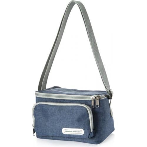 Ланч-бокс выполнен в форме компактной сумки, которую можно носить за ручку или повесить на плечо (предусмотрен регулирующийся по длине ремешок).