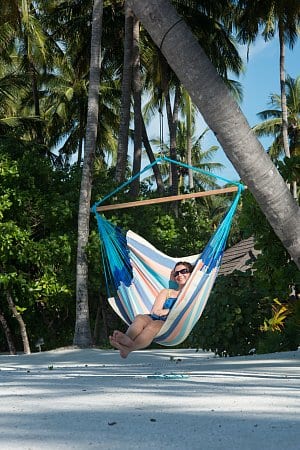 Благодаря большой площади пространства для лежания, в таком стуле вы можете не только сидеть, но и удобно лежать. К тому же, прочная бамбуковая планка удерживается достаточное широкое расстояние между краями сукна – таким образом на подвесном стуле могут удобно расположиться двое отдыхающих. Надежный механизм крепления, толстые канаты и уплотненные края сукна гарантируют Вам полную безопасность отдыха в модели Domingo.