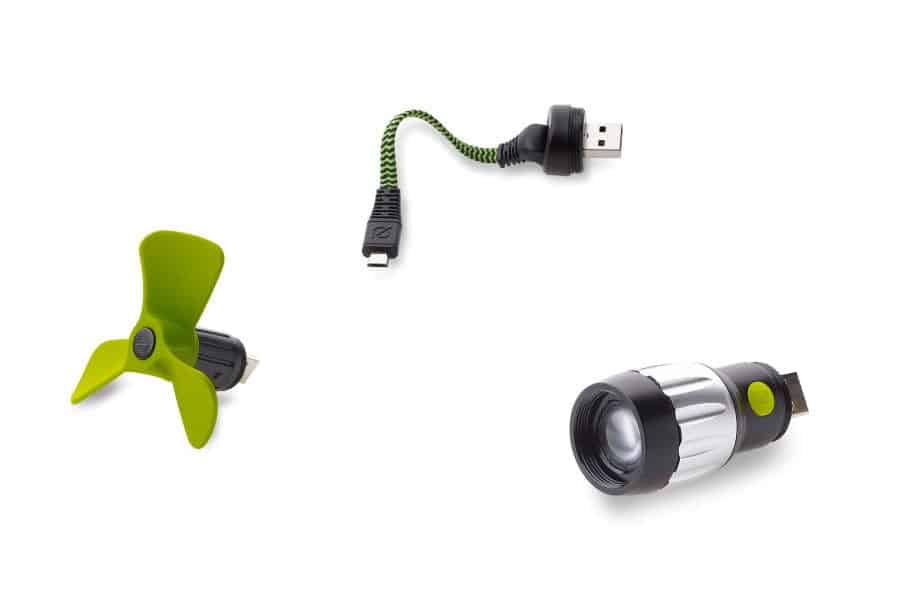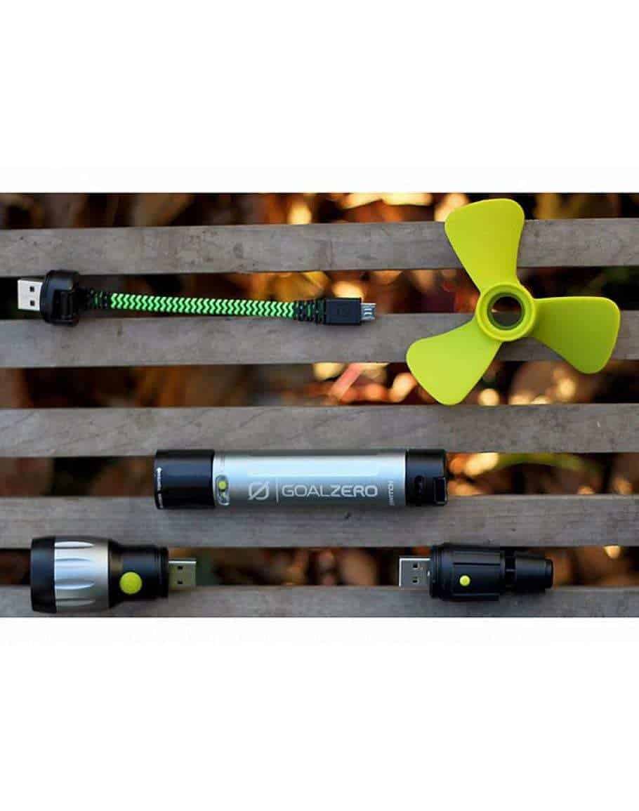 Он в силах осветит путь в темноте мощным фонариком или охладить в знойный летний день забавным вентилятором. Все дополнительные элементы съёмные и заменяются за секунды. Сам же Switch 10 может подпитаться, как от солнечной панели Goal Zero Nomad 7 (которая идёт в комплекте), так и от любого источника питания с USB-выходом.