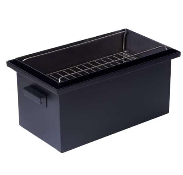 - Поддон для сбора жира предотвращает попадание капель на щепу, которые могут испортить вкусовые качества