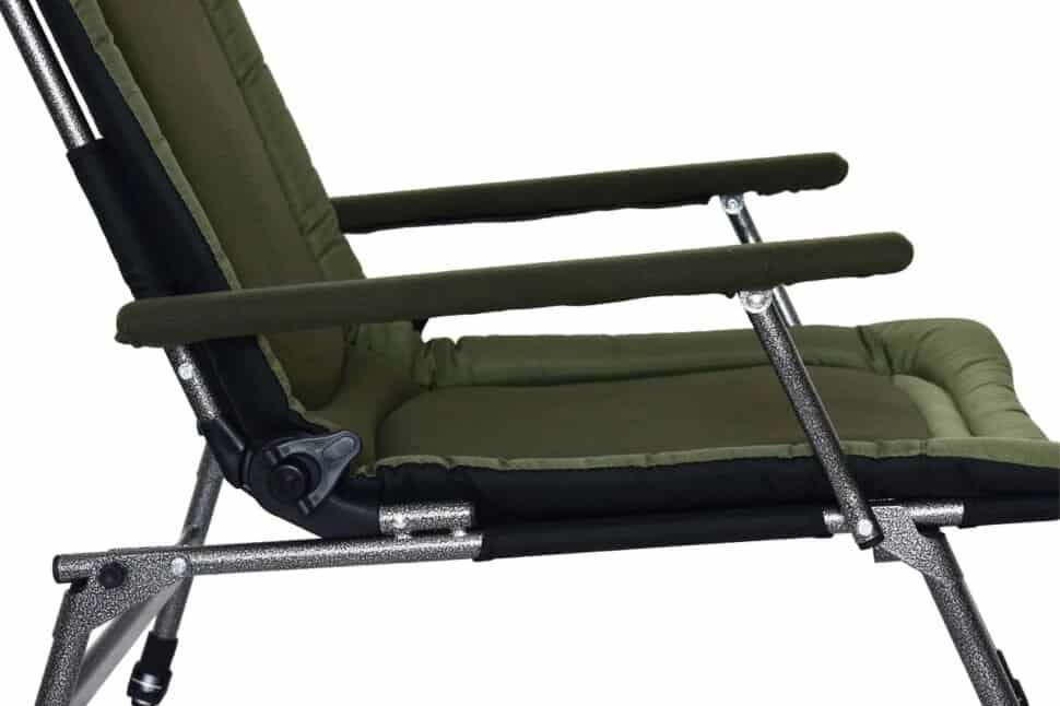 Для пошива чехла используется флис и ткань оксфорд 1200 D цвета хаки с наполнителем толщиной 4 см.У верхней части чехол оборудован мягким подголовником. Одним из основных преимуществ данной модели, это возможность регулирования наклона спинки.