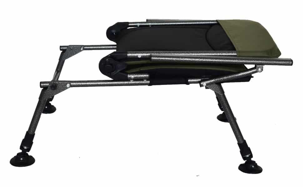 Карповое кресло имеет регулируемые ножки с устойчивой основой для каждой из них, позволяет установить его практически на любой поверхности и выставить необходимую высоту кресла.