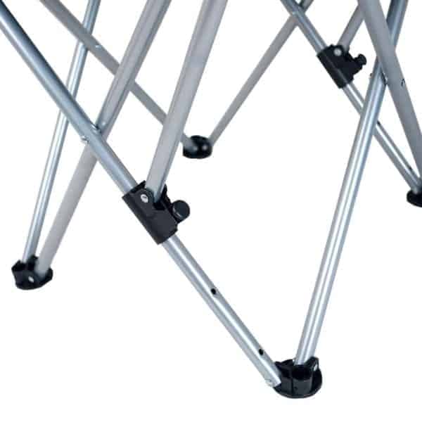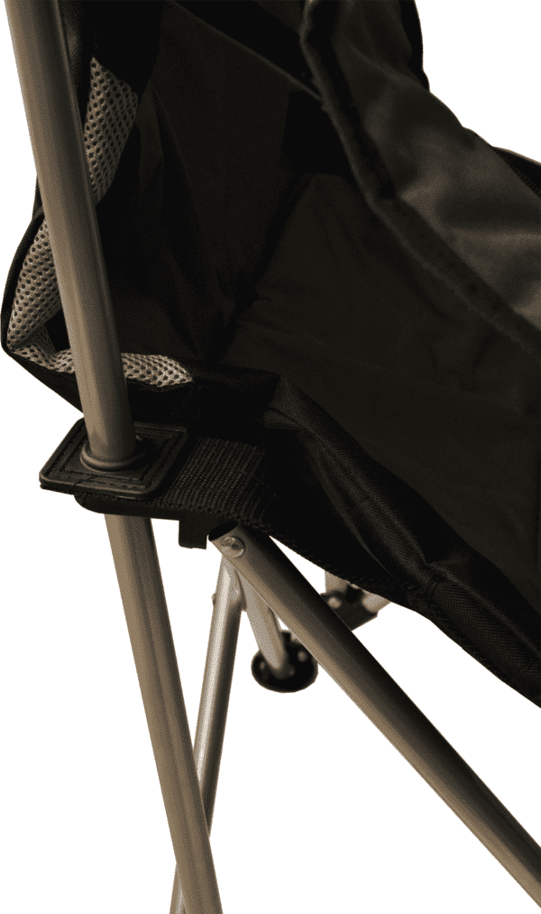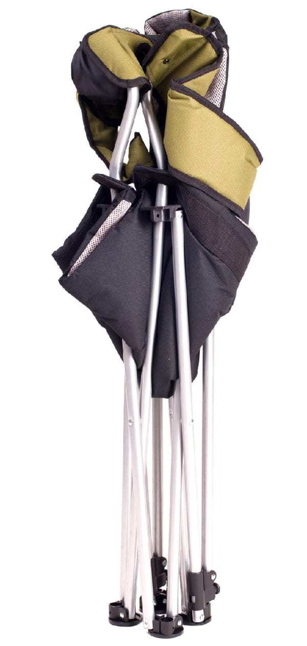 Каркас из стальных труб не имеет жёсткой фиксации, что добавляет креслу мягкости. Конструкция надёжная и устойчивая. Кресло раскладывается практически самостоятельно и не требует дополнительной фиксации. В сложенном виде очень компактно, не займёт много места, удобно в транспортировке. В комплект входит чехол из ткани, с плечевым ремнем для удобства переноски.
