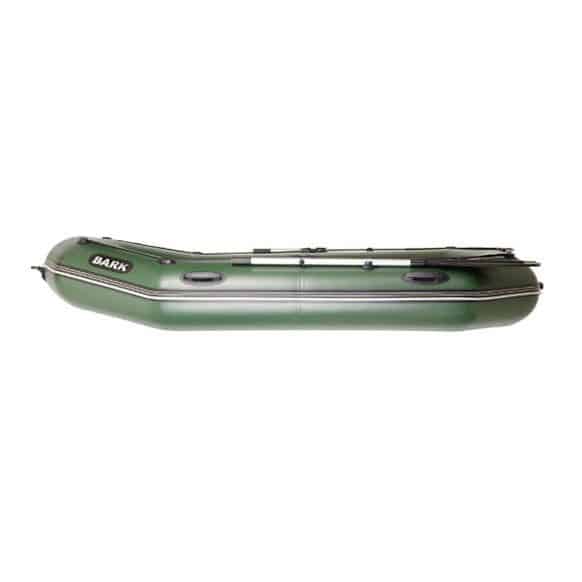 BARK B-280P — универсальная трехместная гребная лодка с привальным брусом и сланевым настилом. Привальный брус расположен по ватерлинии судна. Он представляет из себя защитный резиновый молдинг Т-образного сечения и помогает защитить баллоны от повреждений при швартовке, а так же выполняет функцию брызгоотбойника. Кроме того данная модель, в отличии от базовой, укомплектовано дополнительными 4-мя ручками, что расположены с правого и левого бортов. Судно имеет борта диаметром 36 см, из прочного, армированного ПВХ плотностью 850 гр/м2. Материал надувных баллонов — матовый, светло-зеленого цвета. Днище выполнено из практичного ПВХ черного цвета. Вы также можете заказать лодку других, из указанных в характеристиках, цветов и их комбинацию. Безопасность на воде достигается благодаря применению в конструкции судна 2-х раздельных гермоотсеков, Такая конструкция обеспечивает способность лодки оставаться на плаву, со штатной загрузкой, даже в случае повреждения одного из баллонов. Размеры кокпита позволяют принять на борт до трех пассажиров, а грузоподъемность модели равна 290 кг. Днище лодки укрыто реечным настилом из 3-х сланей. Общий вес комплекта в 25 кг и компактные упаковочные размеры позволяют без труда переносить лодку даже в одиночку и транспортировать ее в багажнике любого легкового автомобиля.