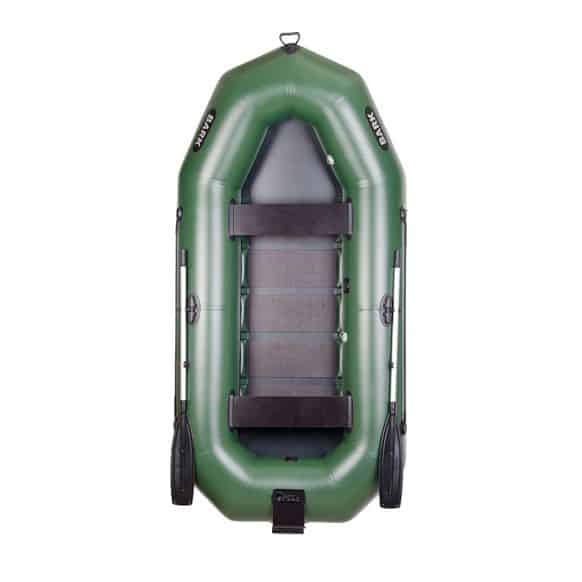 BARK B-300N — трехместная универсальная гребная лодка с «высоким бортом», навесным транцем и сланевым настилом. Модель обладает широким кругом применения и послужит отличным спутником для многих любителей рыбалки, водного туризма и охоты. Судно имеет высокие борта диаметром 40 см, которые изготовлены из прочного, износостойкого, армированного ПВХ плотностью 850 гр/м2. Материал надувных баллонов — матовый, светло-зеленого цвета. Днище выполнено из практичного ПВХ черного цвета. Безопасность на воде достигается благодаря применению в конструкции судна 2-х раздельных гермоотсеков, Такая конструкция обеспечивает способность лодки оставаться на плаву, со штатной загрузкой, даже в случае повреждения одного из баллонов. Размеры кокпита просторны для рыбалки вдвоем, а при необходимости позволяют принять на борт до трех пассажиров. Грузоподъемность модели составляет 380кг. Надувная лодка БАРК 300N укомплектована навесным транцем, который предназначен для установки подвесного лодочного мотора мощностью до 5 л.с. Стоит обратить внимание, что высота транца предусматривает использование бензинового мотора с длинной ногой «L» либо электромотора. Жесткость днища достигается наличием сланевого настила из 5-ти сланей. Общий вес комплекта в 28 кг и компактность упаковки позволяют без дополнительных хлопот переносить лодку в одиночку и транспортировать ее в багажнике любого легкового автомобиля.