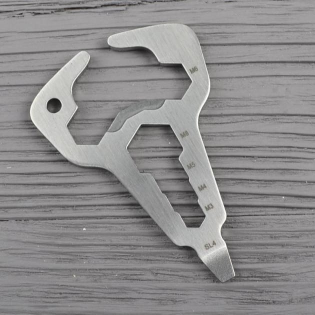 В мультитуле объединены отвертка, гаечные ключи, открывалка для бутылок. Всего три функции, которых хватит для решения наиболее часто возникающих задач. Удобно для использования на работе, на прогулке, во время вылазки, дома также может пригодиться. Можно прицепить мультитул к одежде или рюкзаку, для этого предусмотрен карабин. Цвет мультитула – серый, длина 7,4 сантиметра.