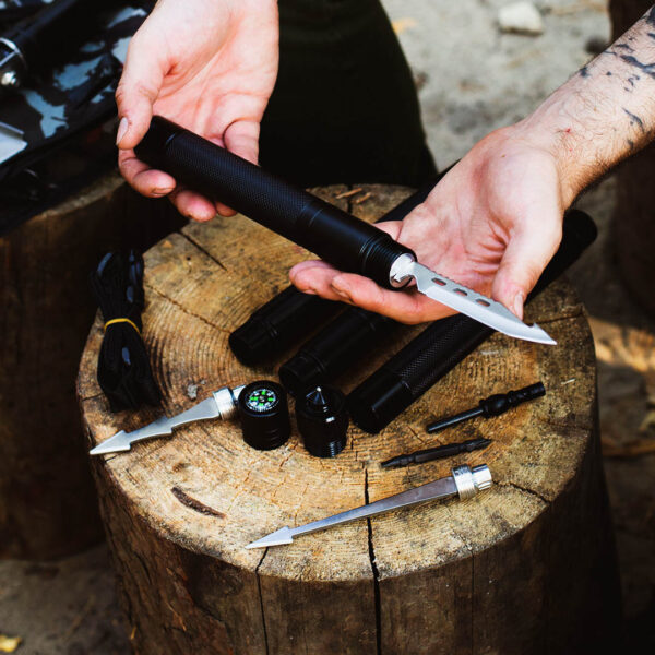 Модель HK001 – это мультифункциональное изделие, исключающее необходимость носить с собой тяжелый набор инструментов, без которого не обойтись во время отдыха на природе. Оно включает один основной и шесть дополнительных инструментов, составляющих оптимальный набор для выживания вдали от цивилизации: