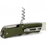 Представленная модель имеет очень простую конструкцию и отличается хорошей функциональностью, за счет того что она оснащена не только достаточно прочным и острым клинком, но и имеет «на борту» дополнительный клинок с серрейторной заточкой, отвертку с плоским шлицем, комбинированную с открывалкой, штопор, а также стеклобой и съемные щипцы. Как основной клинок, так и все дополнительные инструменты выполнены из высококачественной стали марки Sandvik 12C27, которая в свою очередь была закалена до уровня 58-59 HRC. Эта особенность позволяет применять нож в самых разнообразных условиях, без опасений что он сломается, быстро затупится или заржавеет после контакта с водой.