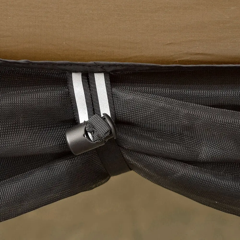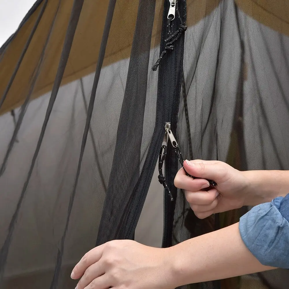 Вход-выход оборудован молнией, для лучшей защиты от проникновения насекомых. В комплект входят регулируемые защелки и 8 алюминиевых штифтов (колочки).