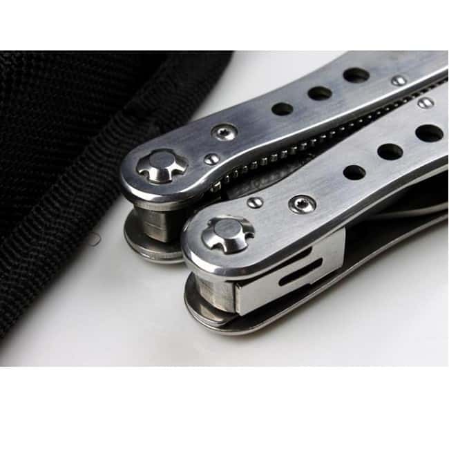 Благодаря металлической рукоятке, мультитул становится еще более крепким. Для максимального удобства в процессе эксплуатации на ручке есть насечка, которая поможет избежать скольжения.