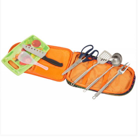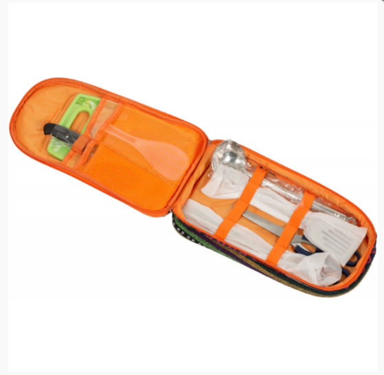 Первое, что бросается в глаза – это яркий дизайн чехла с этно орнаментом. Внутри вы найдете полноценный набор для приготовления супов, жарки мяса, нарезки овощей и тд. Каждый предмет набора находится в индивидуальном отсеке. Комплект Chief’s Vocation станет хорошим помощником на рыбалке, на пикнике или даже дома.