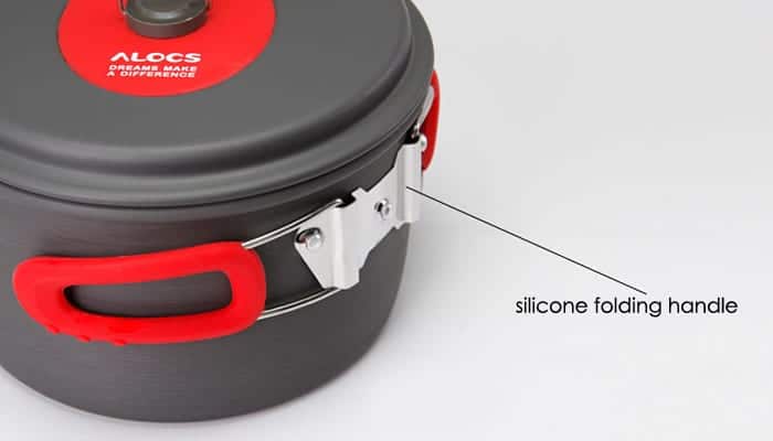 Удобный и практичный набор для приготовления пищи от компании Alocs. В набор входит две вместительные кастрюли 2.3 и 1,2 литра, 2 крышки, 19 см сковорода и чайник 0,8 литра. Изготовлен набор из анодированного алюминия, который контактируя с продуктами питания не подвергается коррозии. Ручки из нержавеющей стали в силиконе не позволят обжечься во время приготовления и удобно складываются во время транспортировки. Набор прекрасно подходит для использования на пикниках в походах, рыбалке или охоте.