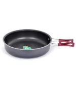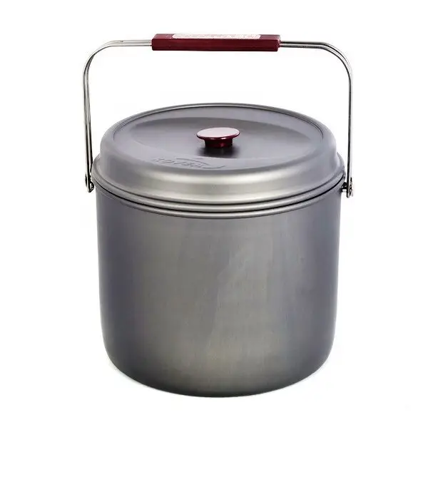 Набор легкой производной алюминиевой посуды с холодным анодированием Kovea KSK-WH10 Hard 10, рассчитанный на девять-десять человек. Набор состоит из четырех кастрюлек объемом 8.5 литров, 4.2 литра, 2.8 литра и 1.8 литра, удобной сковороды, чайника из нержавеющей стали, 5 тарелок, 7 чашек, контейнера, дуршлага, лопаточки и складной черпачки. Кастрюли и сковорода не имеют пластиковых деталей, в связи с чем их можно легко ставить на открытый огонь или уголь, не опасаясь оплавления и деформации. Анодированный алюминий имеет повышенную теплопроводность, в связи с чем еда готовится гораздо быстрее. Материал также показывает превосходную стойкость перед окислением, даже при длительной эксплуатации.