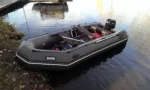 Эта моторная лодка с надувным килем и жестким сборным настилом при наибольшей длине благодаря оптимально выверенным пропорциям обладает высокой управляемостью, маневренностью. Показывает хорошую скорость с мотором до 30 л. Передвижные сиденья облегчают оптимальное распределение веса, управление лодкой. Привальный брус с брызгоотбойником защищает борта от столкновения и излишнего трения. Защитные молдинги на днище берегут его от лишнего трения во время вытягивания на берег, перевозки на прицепе. Самый просторный кокпит большой емкости позволяет нескольким рыбакам устроить мини-чемпионат в пределах одной лодки. При этом каждому хватит места для действий. Очень хорошая лодка для скоростных водных прогулок даже для 10 человек.