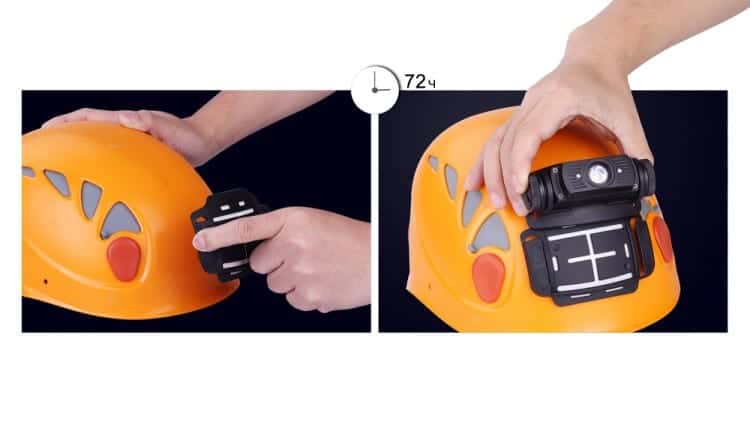 Крепление позволяет без проблем поворачивать установленный фонарь, выбирая оптимальный угол освещения. Также фонарь можно снять совсем и использовать как ручное устройство. Само основание крепления при этом не снимается и остается на шлеме, а потому фонарь можно вновь в считанные секунды закрепить на каске.